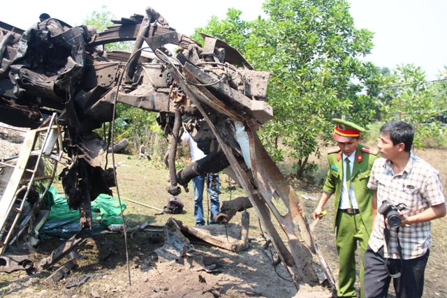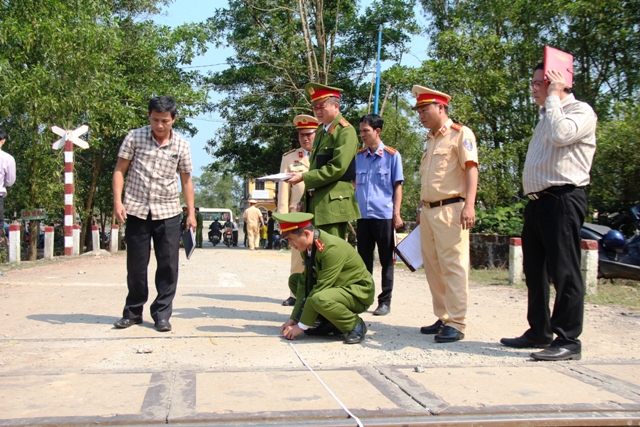 Các cơ quan chức năng khám nghiệm hiện trường đường ngang nơi xảy ra vụ tai nạn kinh hoàng