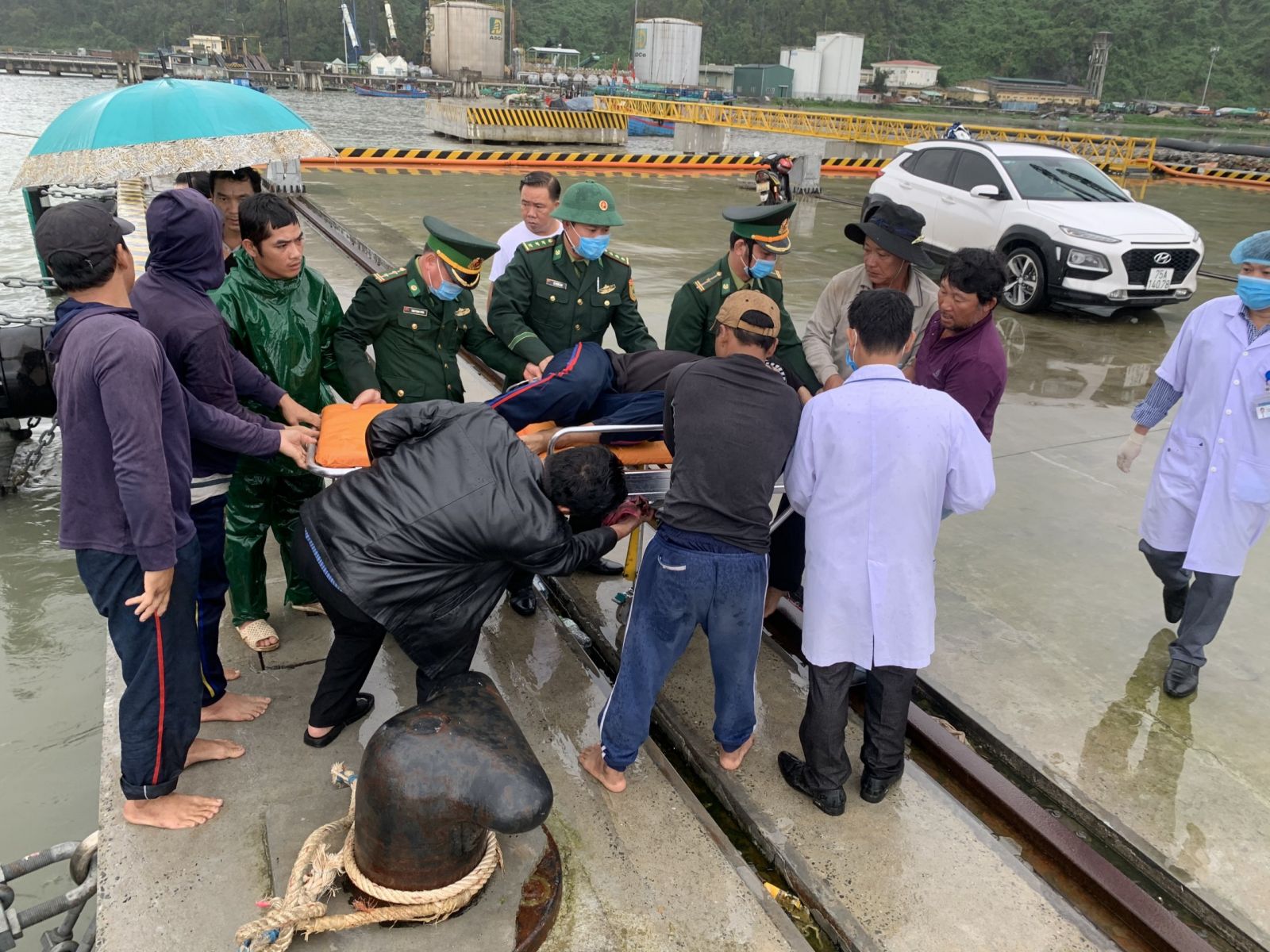 Sau khi hướng dẫn tàu cá cập Cảng Chân Mây, cán bộ chiến sĩ Đồn Biên phòng cửa khẩu Chân Mây phối hợp với Trung tâm y tế huyện Phú Lộc sơ cứu ban đầu, đưa nạn nhân đi cấp cứu tại Bệnh viện đa khoa Đà Nẵng. Hiện bệnh nhân trong tình trạng tỉnh táo và có thể di chuyển nhẹ.