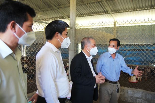 Phó Bí thư Thường trực Tỉnh ủy Phan Ngọc Thọ cùng các sở, ban, ngành kiểm tra mô hình trang trại chăn nuôi, trồng cây của gia đình ông Lê Công Đức