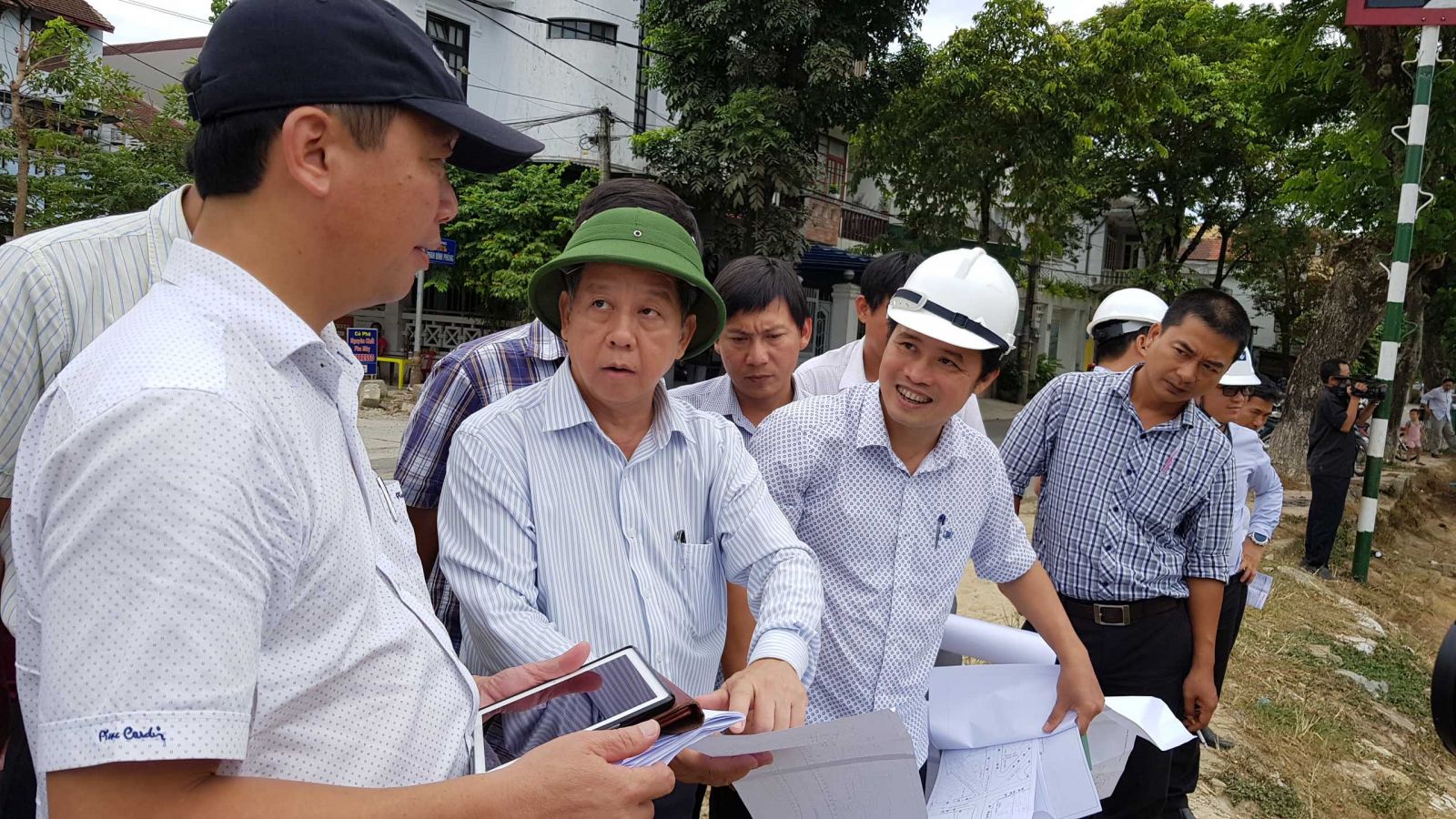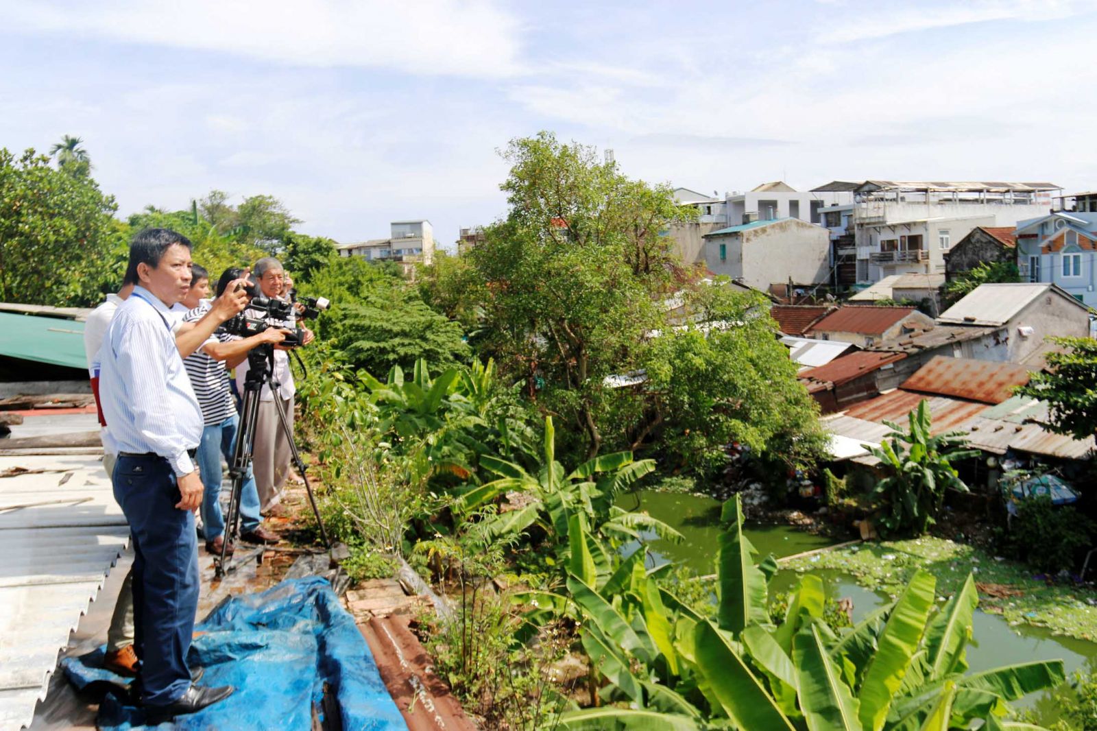 Các phóng viên báo chí thực tế tại Thượng thành Huế nhằm tuyên truyền về việc di dời, giải tỏa khu vực này trong tương lai. Ảnh: Thái Sơn