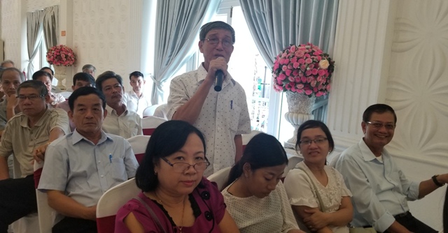 Sau khi nghe báo cáo, cử tri hai phường đã đề đạt ý kiến, đề xuất một số vấn đề liên quan đến công tác quản lý trật tự đô thị, giải phóng mặt bằng và trật tự an toàn xã hội.