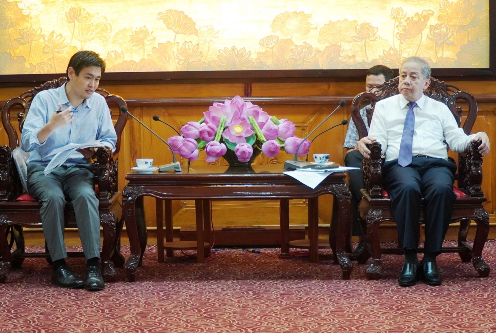 Chủ tịch UBND tỉnh Phan Ngọc Thọ (bên phải) trao đổi cùng đại diện cơ quan hợp tác quốc tế Nhật Bản tại Việt Nam