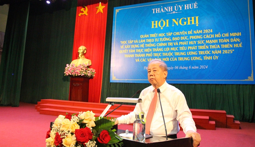 HNN.VN - Sáng 6/6, tại Trung tâm Văn hóa - Điện ảnh tỉnh, Ban Thường vụ Thành ủy Huế triển khai hội nghị quán triệt, học tập chuyên đề năm 2024 “Học tập và làm theo tư tưởng, đạo đức, phong cách Hồ Chí Minh về xây dựng hệ thống chính trị và phát huy sức mạnh toàn dân; quyết tâm thực hiện thắng lợi mục tiêu phát triển Thừa Thiên Huế thành thành phố trực thuộc Trung ương trước năm 2025” và các văn bản mới của Trung ương, của Tỉnh ủy.