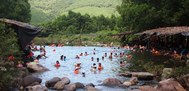Tăng cường công tác tuyên truyền, cảnh báo về tai nạn đuối nước bằng các hình thức. Trong ảnh, người dân tắm suối ở Phú Lộc