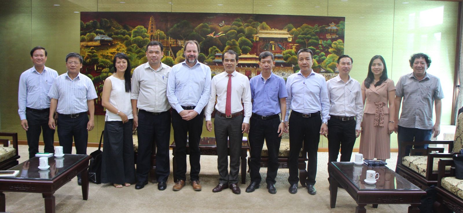Lãnh đạo 2 đơn vị chụp ảnh lưu niệm sau buổi tiếp