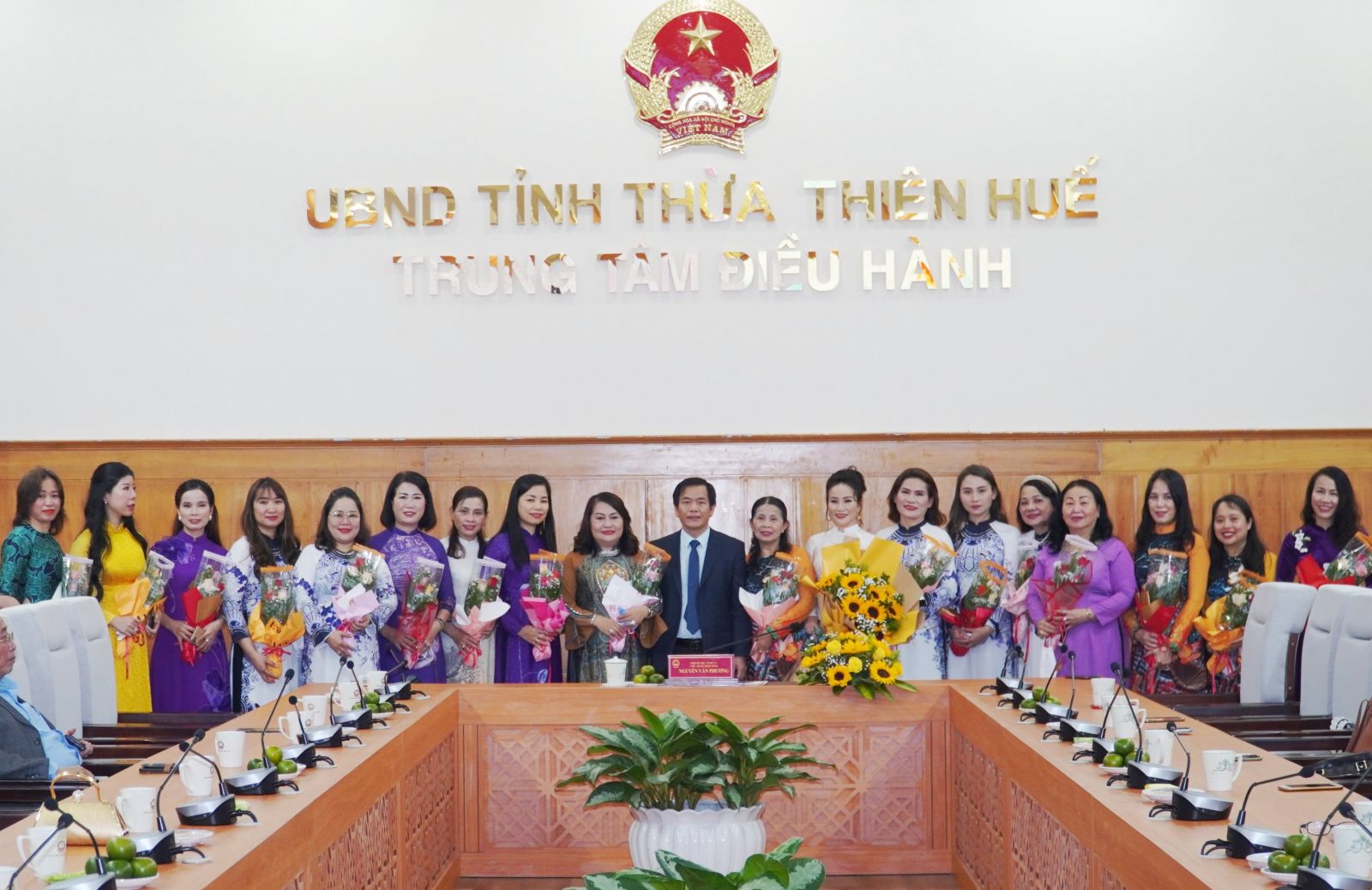 Đội ngũ nữ doanh nhân tỉnh chụp ảnh lưu niệm cùng Chủ tịch UBND tỉnh Nguyễn Văn Phương