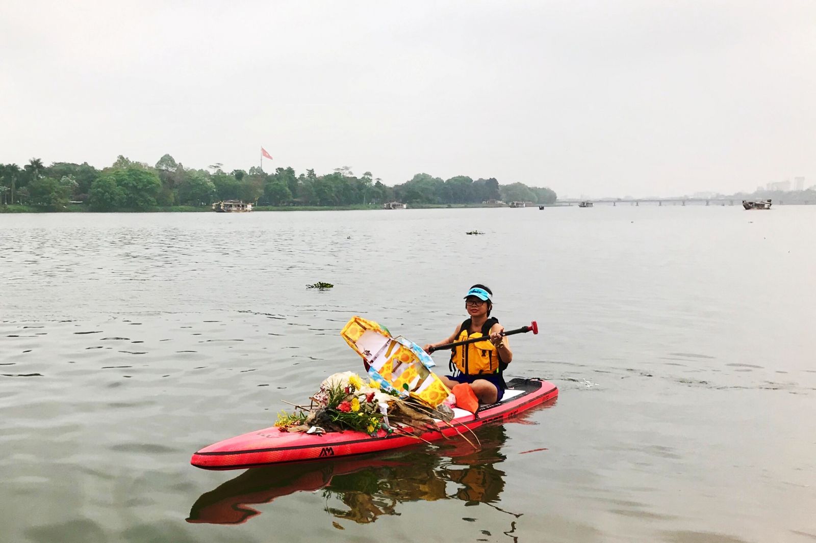 Thành viên CLB TEAM SUP chèo thuyền vớt rác trên sông Hương vào mỗi ngày chủ nhật