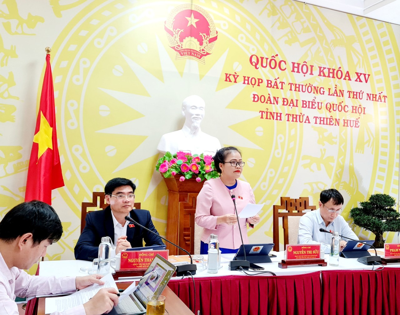 Phó Trưởng đoàn ĐBQH tỉnh Thừa Thiên Huế - Nguyễn Thị Sửu tham gia phát biểu ý kiến sáng 7/1