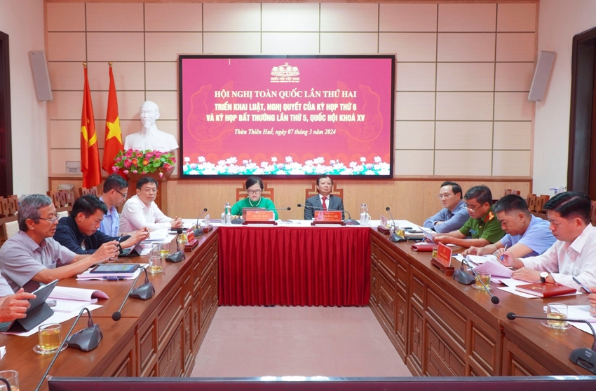 Tại điểm cầu Thừa Thiên Huế có UVTW Đảng, Bí thư Tỉnh ủy, Chủ tịch HĐND tỉnh, Trưởng đoàn ĐBQH tỉnh Lê Trường Lưu; UVTV Tỉnh ủy, Phó Chủ tịch Thường trực UBND tỉnh Nguyễn Thanh Bình; Phó Trưởng đoàn ĐBQH tỉnh Nguyễn Thị Sửu cùng lãnh đạo các sở, ban, ngành, địa phương.