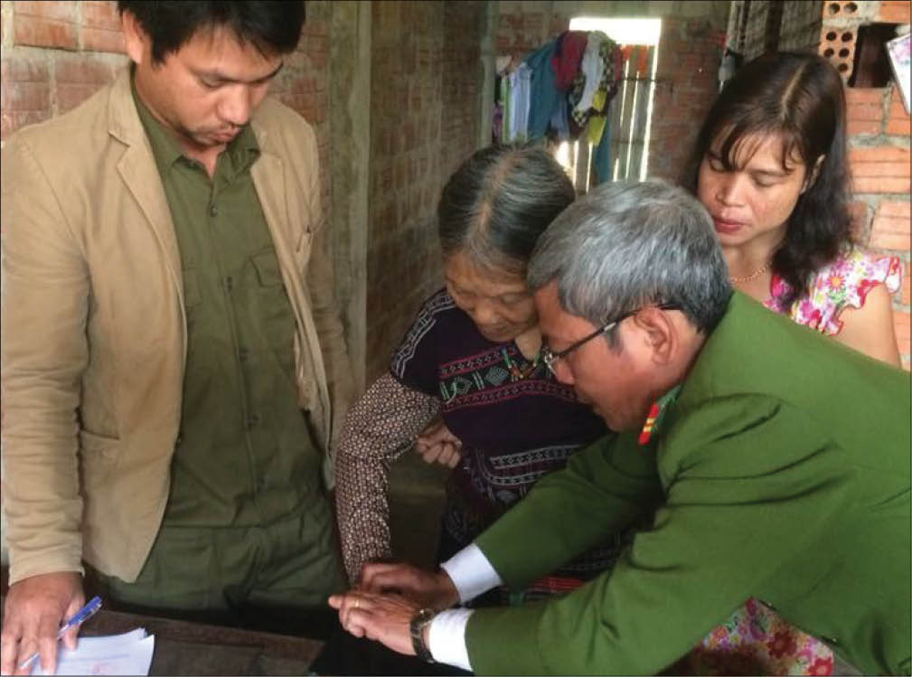 Nhiều trường hợp không thể đi lại, đơn vị về tận nhà dân để tiến hành các thủ tục