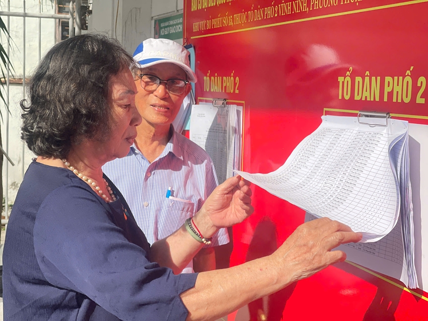 Cán bộ tổ dân phố 2 - Vĩnh Ninh, phường Thuận Hóa kiểm tra danh sách cử tri (Ảnh minh họa)