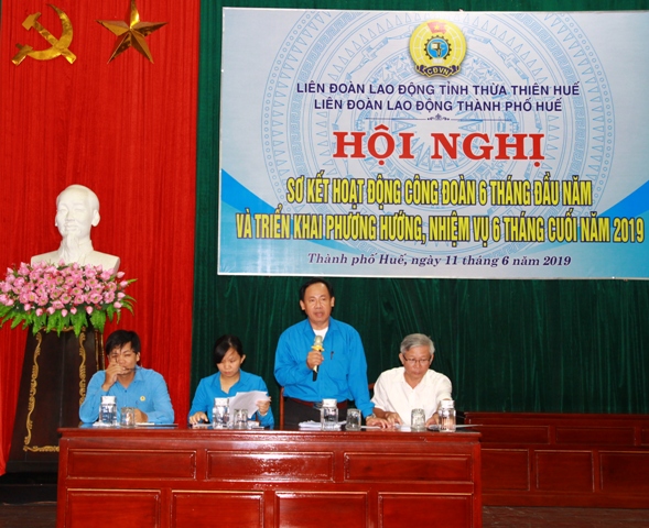 HNN.VN - Đó là một trong những nhiệm vụ trọng tâm trong 6 tháng đầu năm 2019 của Liên đoàn Lao động (LĐLĐ) TP. Huế được đánh giá tại hội nghị sơ kết diễn ra sáng 11/6.