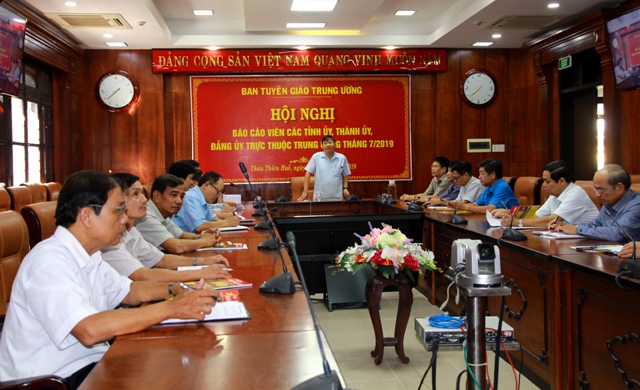 Phó Trưởng Ban Tuyên giáo Trung ương Lê Mạnh Hùng chủ trì tại điểm cầu Trung ương; Phó Trưởng ban Thường trực Ban Tuyên giáo Tỉnh ủy Phùng Văn Vinh chủ trì tại điểm cầu Thừa Thiên Huế.