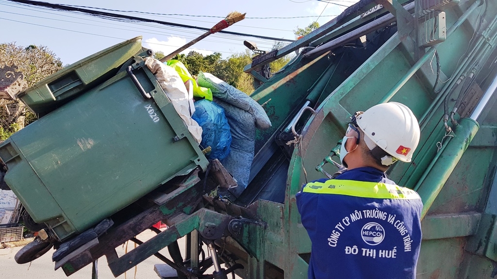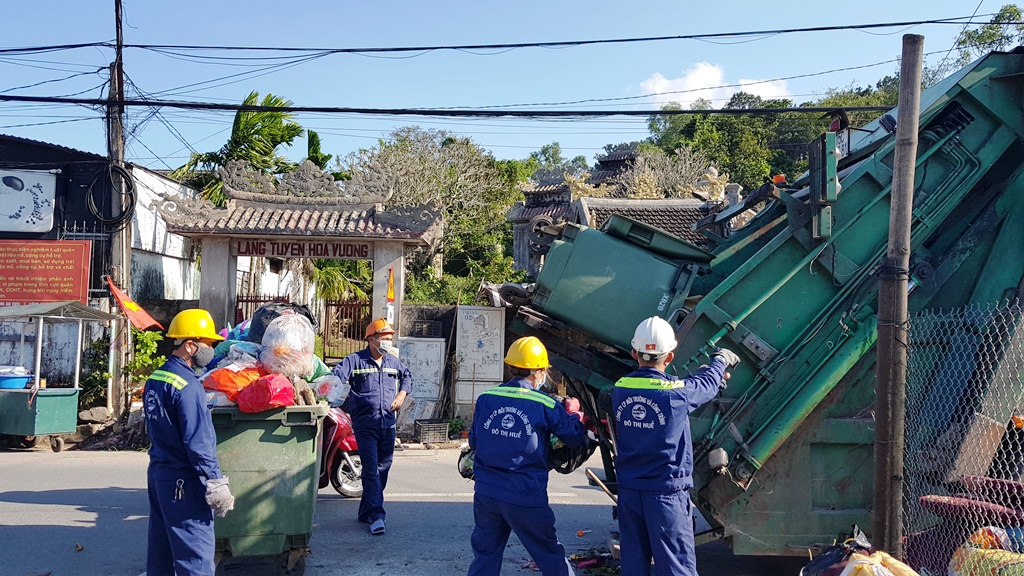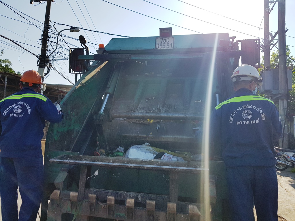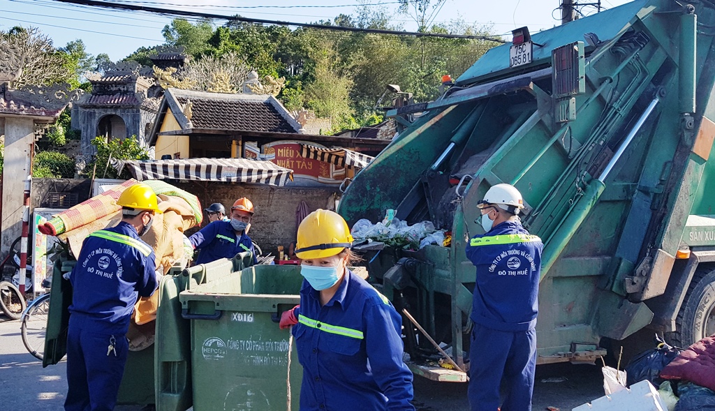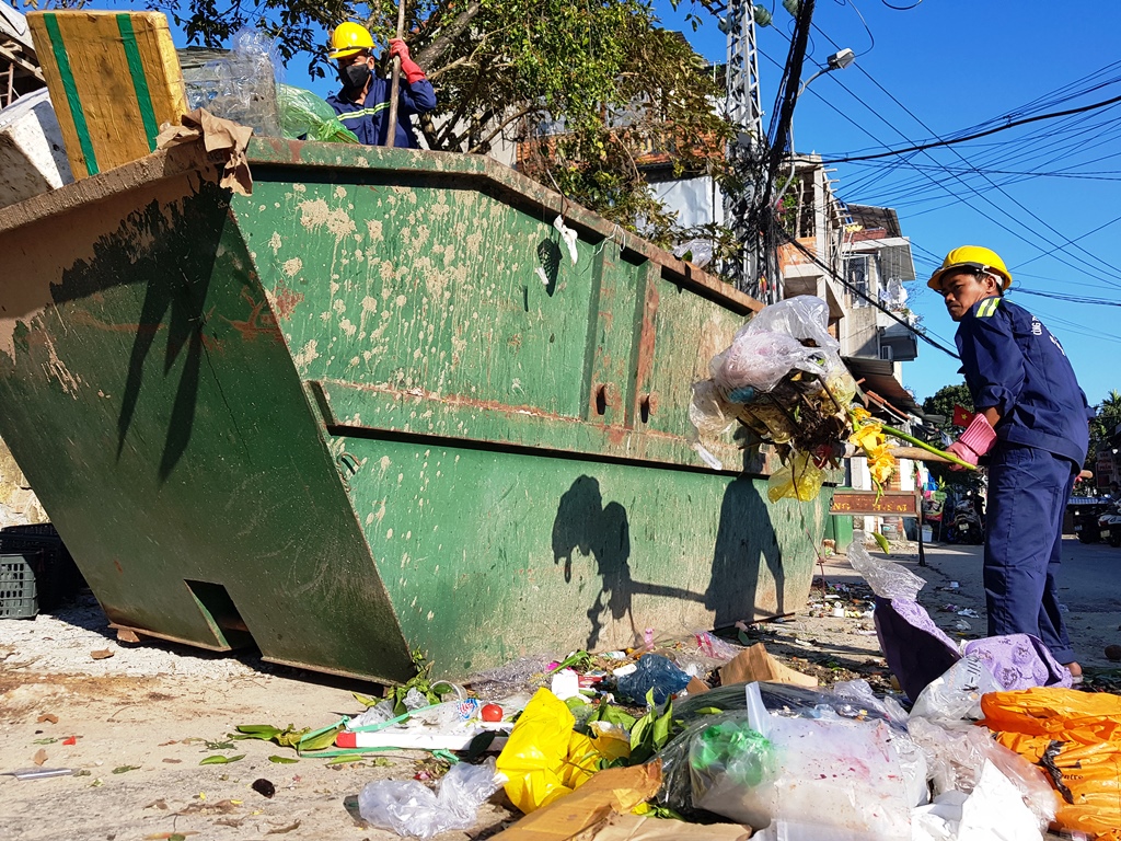HNN.VN - Rác thải những ngày cận tết được các hộ gia đình thải ra hơn nhiều lần so với ngày thường. Chiều 30 tết, hàng trăm lao công Công ty CP Môi trường và Công trình đô thị Huế được huy động tổng lực thu gom. Rác từ ngõ xóm, cho đến trục đường và các điểm thu gom tập trung lần lượt theo các chuyến xe về nơi tiêu huỷ trước giờ giao thừa.