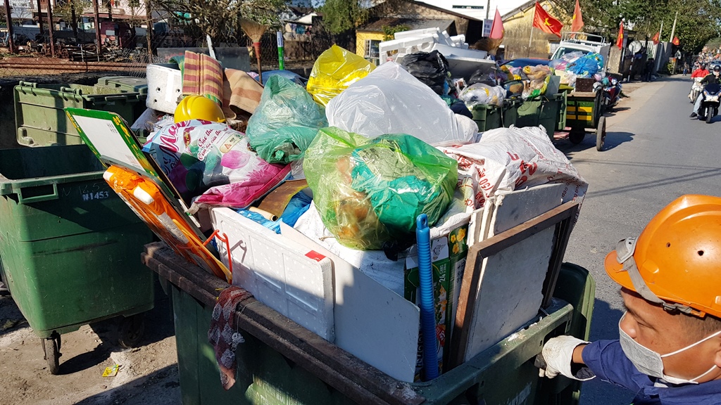 Khác với ngày thường, việc thu gom rác ngày 30 Tết bắt đầu từ giữa trưa. Hết chuyến nào đến chuyến khác, từng chiếc xe rác chất thành đống với ngổn ngang các loại rác được thải ra từ các gia đình. Theo ước tính, lượng rác những ngày cận tết nhiều gấp 3-4 lần so với những ngày bình thường. Vì thế, việc dọn rác được triển khai gấp rút, đồng nghĩa với công việc trở nên vất vả, kết thúc muộn.