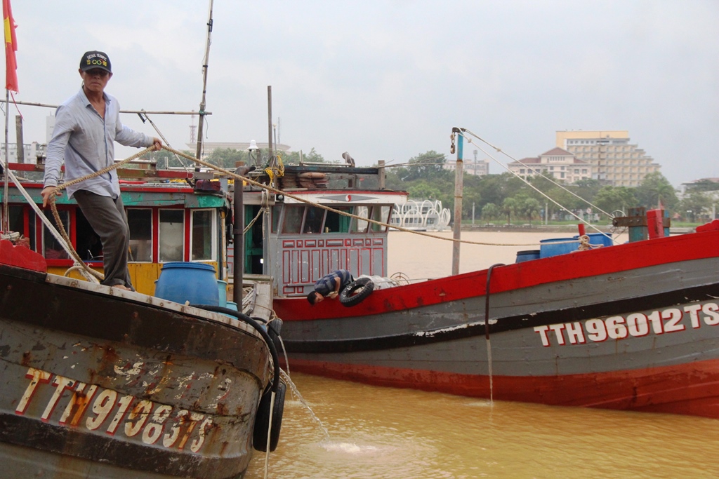 Ngư dân Nguyễn Vũ (Thị trấn Thuận An, huyện Phú Vang) cho biết, âu tàu ở địa phương đã kín chỗ. Vì thế, quyết định di chuyển tàu lên thành phố để neo vừa khuất gió vừa đảm bảo. “Dù biết dự báo tâm bão không đi vào Huế nhưng mình cũng không thể chủ quan. Con tàu là cả một gia sản, phải kiếm chỗ neo cho an toàn”, anh Vũ chia sẻ.