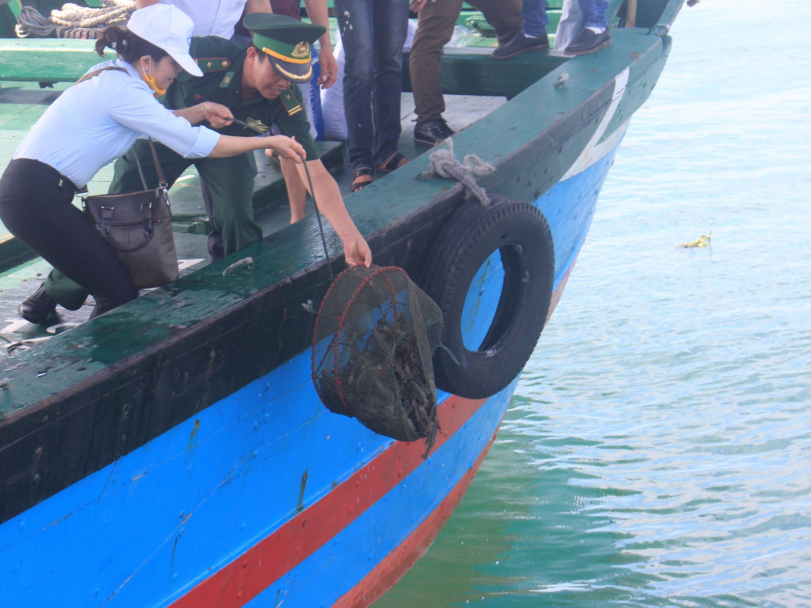 Tại đây, các cơ quan, ban ngành thả hơn 2.000 con tôm sú trưởng thành ra biển. Đây là hoạt động có ý nghĩa chính trị, xã hội sâu sắc, hưởng ứng Ngày Đa dạng sinh học và Ngày Đại dương Thế giới (5/6/2018).
