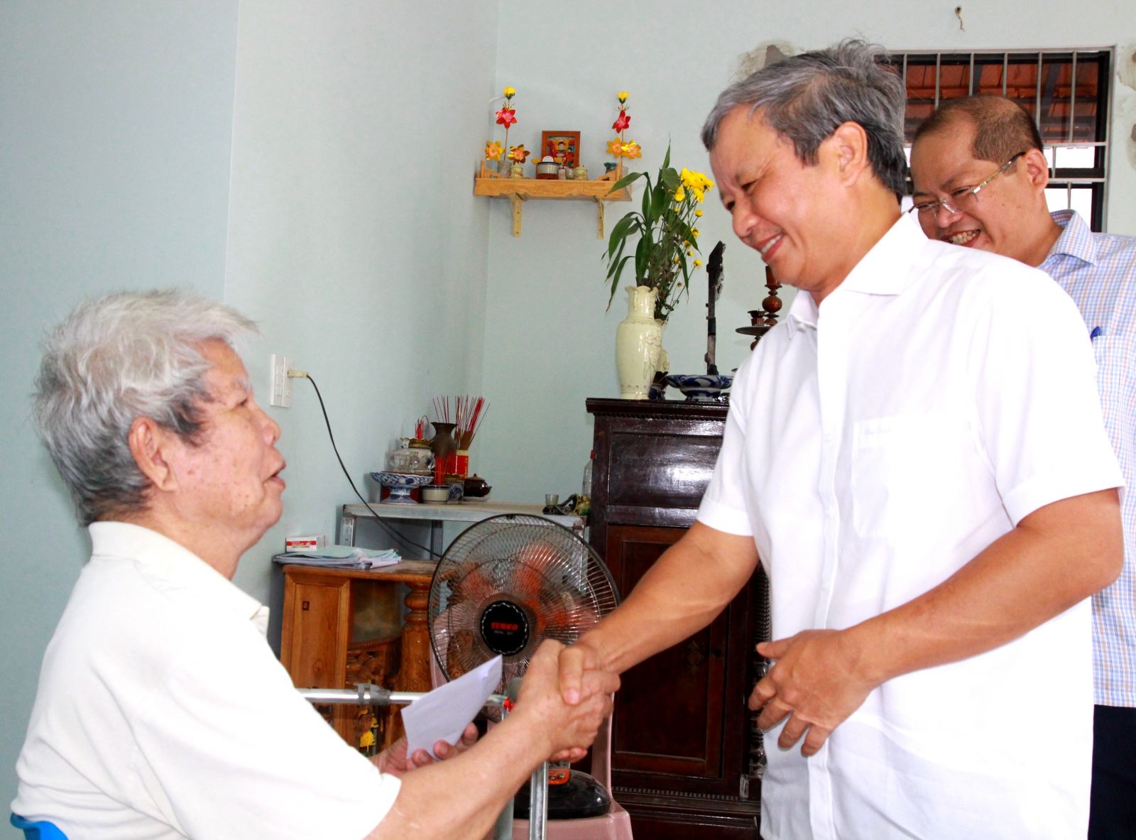 Ông Phan Xuân Toàn (giữa) thay mặt lãnh đạo Tỉnh ủy bày tỏ lòng tri ân đến những người có công