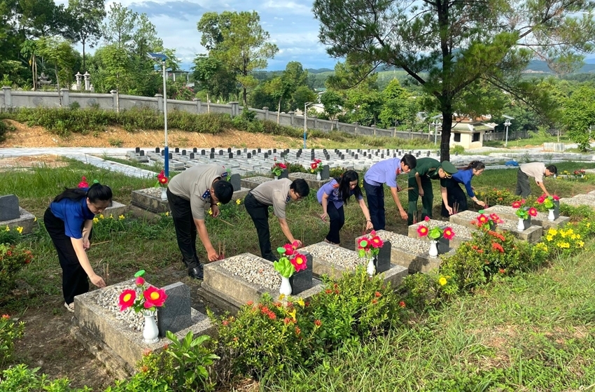 * Ngày 25/7, gần 100 đoàn viên thanh niên Khối thi đua Nội chính tổ chức lễ dâng hương, dâng hoa và ra quân vệ sinh tại Nghĩa trang liệt sĩ TP. Huế.