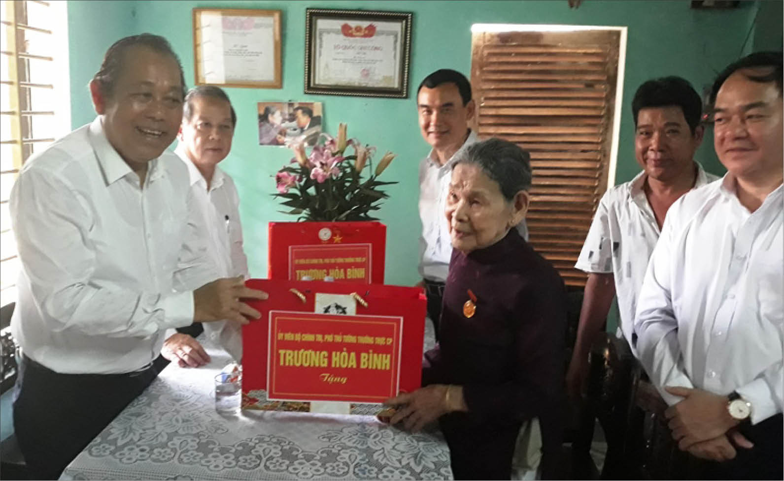 Phó Thủ tướng Thường trực Chính phủ Trương Hòa Bình thăm, tặng quà MVNAH Trần Thị Thí ở phường Thuận Thành (TP Huế)