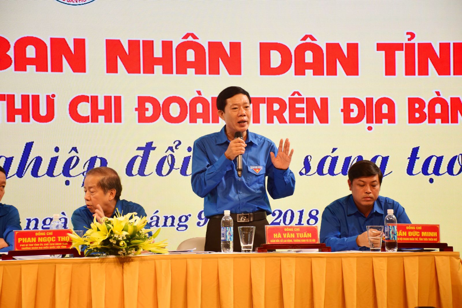 Về giải quyết việc làm, Chủ tịch UBND tỉnh nêu câu hỏi, có bao nhiêu bạn trẻ ngồi đây có ý chí lập doanh nghiệp hoặc tham gia và các doanh nghiệp để cùng phát huy nghề nghiệp của mình trong nhiều năm đào tạo. Tỉnh cũng đã ban hành nhiều cơ chế để tạo điều kiện phát triển doanh nghiệp từ ý tưởng khởi nghiệp. Đồng thời, chỉ đạo các cơ quan liên quan nâng cao kỹ năng nghề cho người lao động; định hướng giáo dục phân luồng học sinh; đào tạo nghề cho lao động nông thôn; đào tạo nghề phi nông nghiệp… gắn với tổ chức nhiều hơn ngày hội việc làm, tạo cơ hội cho thanh niên có việc làm.