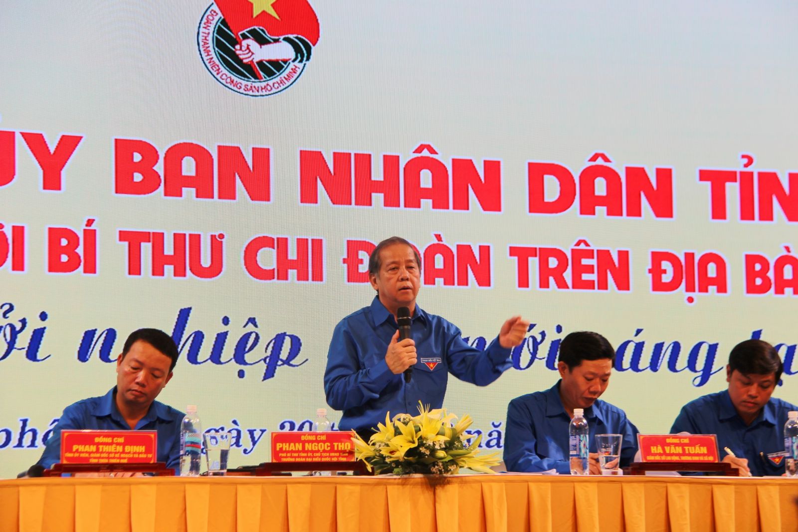 “Chính quyền tỉnh phải làm gì và làm thế nào để thế hệ trẻ phát triển tốt hơn, nhanh hơn, toàn diện, để ĐVTN hoạt động thiết thực hơn, hiệu quả hơn và ĐVTN phải làm gì, làm thế nào để thực sự là rường cột của đất nước, thực sự là rường cột xung kích, là lực lượng hậu bị tin cậy của Đảng. Tôi cùng các lãnh đạo sở, ngành sẵn sàng trao đổi về những vấn đề các bạn quan tâm”- Chủ tịch UBND tỉnh Phan Ngọc Thọ nói.