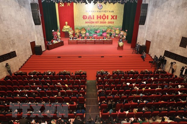 Quang cảnh phiên khai mạc chính thức Đại hội đại biểu Hội Nhà báo Việt Nam lần thứ XI, nhiệm kỳ 2020-2025. (Ảnh: Minh Quyết/TTXVN)