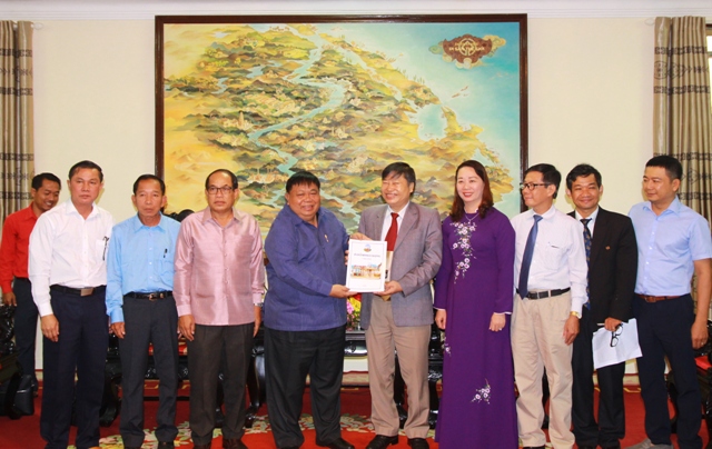 Chủ tịch HĐND tỉnh, Trưởng đoàn nghiên cứu lịch sử tỉnh Sê Kông Phonphet Khiulavong tặng cuốn lịch sử Đảng bộ tỉnh Sê Kông cho Đảng bộ, chính quyền, Nhân dân tỉnh Thừa Thiên Huế
