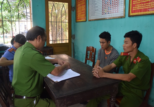 Đối tượng Lê Bá Huy thừa nhận hành vi của mình với Công an huyện Phú Vang