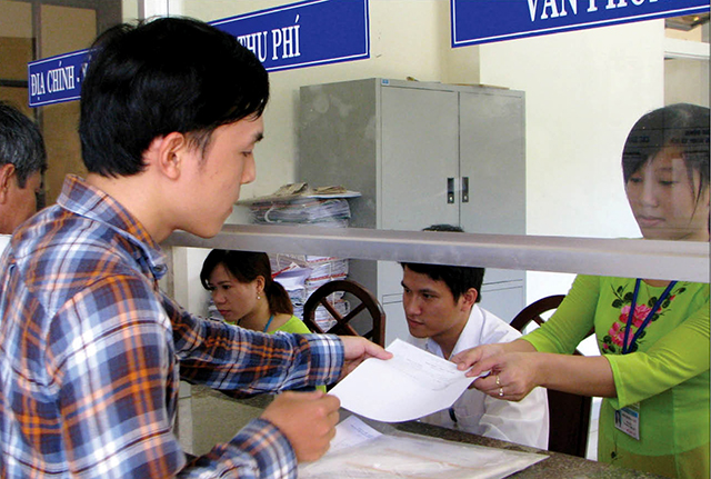 Hoạt động của bộ máy cấp xã, phường cũng được thay đổi cho phù hợp (Ảnh: Cán bộ phường Vỹ Dạ, TP. Huế giải quyết các thủ tục cho người dân