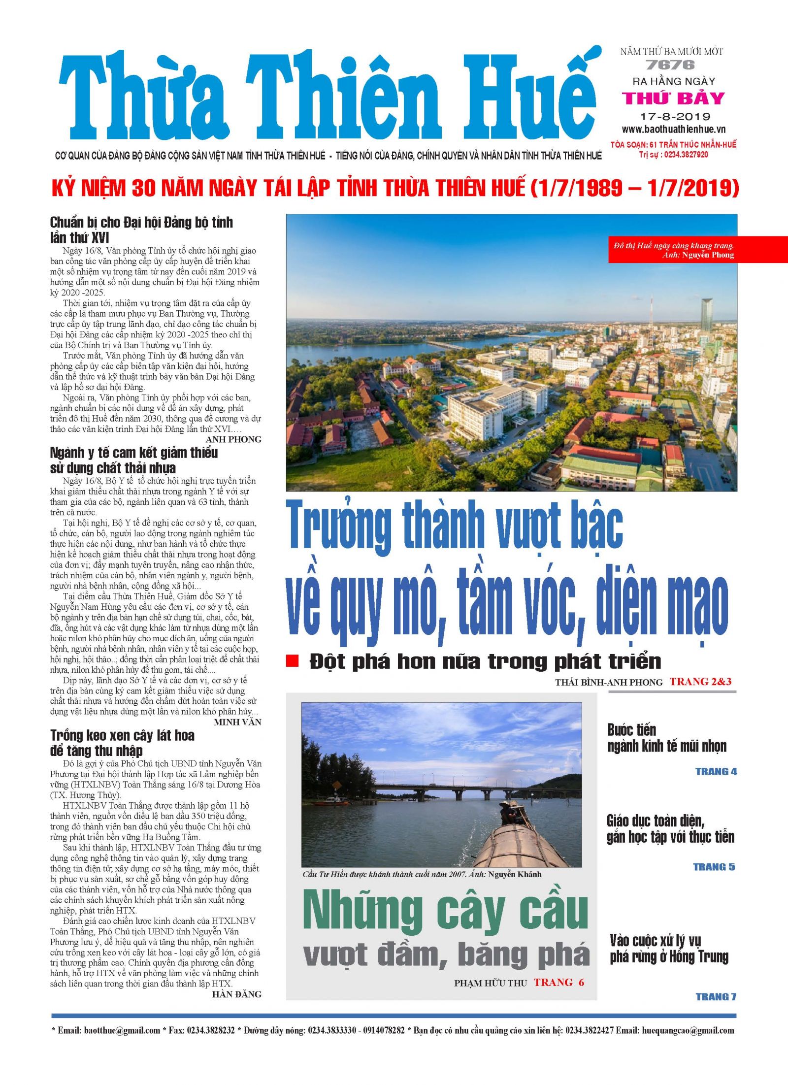 Trang bìa Báo Thừa Thiên Huế phát hành ngày 17/8