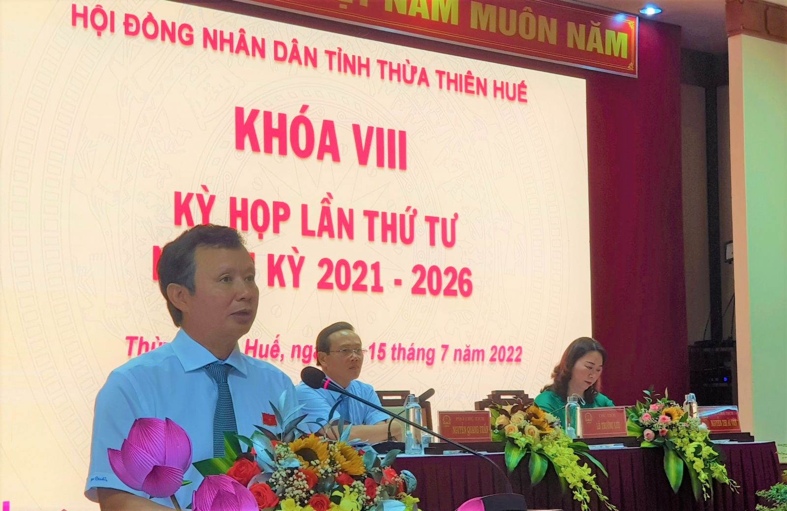 Báo cáo tình hình thực hiện kế hoạch phát triển kinh tế - xã hội 6 tháng đầu năm, Chủ tịch UBND tỉnh Nguyễn Văn Phương cho biết, tốc độ tăng trưởng kinh tế (GRDP) 6 tháng đầu năm 2022 đạt 6,92% (mức tăng cùng kỳ 5,72%); đạt mức trung bình khá so với các tỉnh trong vùng Bắc Trung bộ và Duyên hải miền Trung. Tổng sản phẩm trong tỉnh ước đạt 16.813,1 tỷ đồng, bằng 46,8% so kế hoạch.