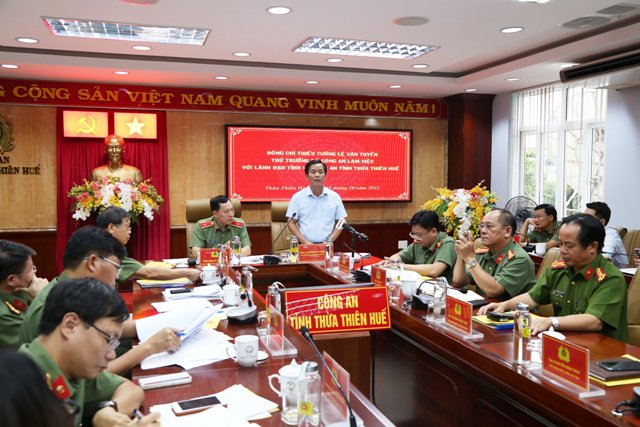 Thứ trưởng Lê Văn Tuyến chỉ đạo, thời gian tới, Công an Thừa Thiên Huế tiếp tục chủ động nắm tình hình, tham mưu Tỉnh ủy, UBND tỉnh huy động sức mạnh của hệ thống chính trị, kịp thời phát hiện các vấn đề nổi lên trên địa bàn, nhất là công tác phòng ngừa, góp phần đảm bảo tốt tình hình ANTT trên địa bàn. Quan tâm triển khai các biện pháp quản lý Nhà nước về ANTT; đẩy mạnh đảm bảo TTATGT, PCCC.
