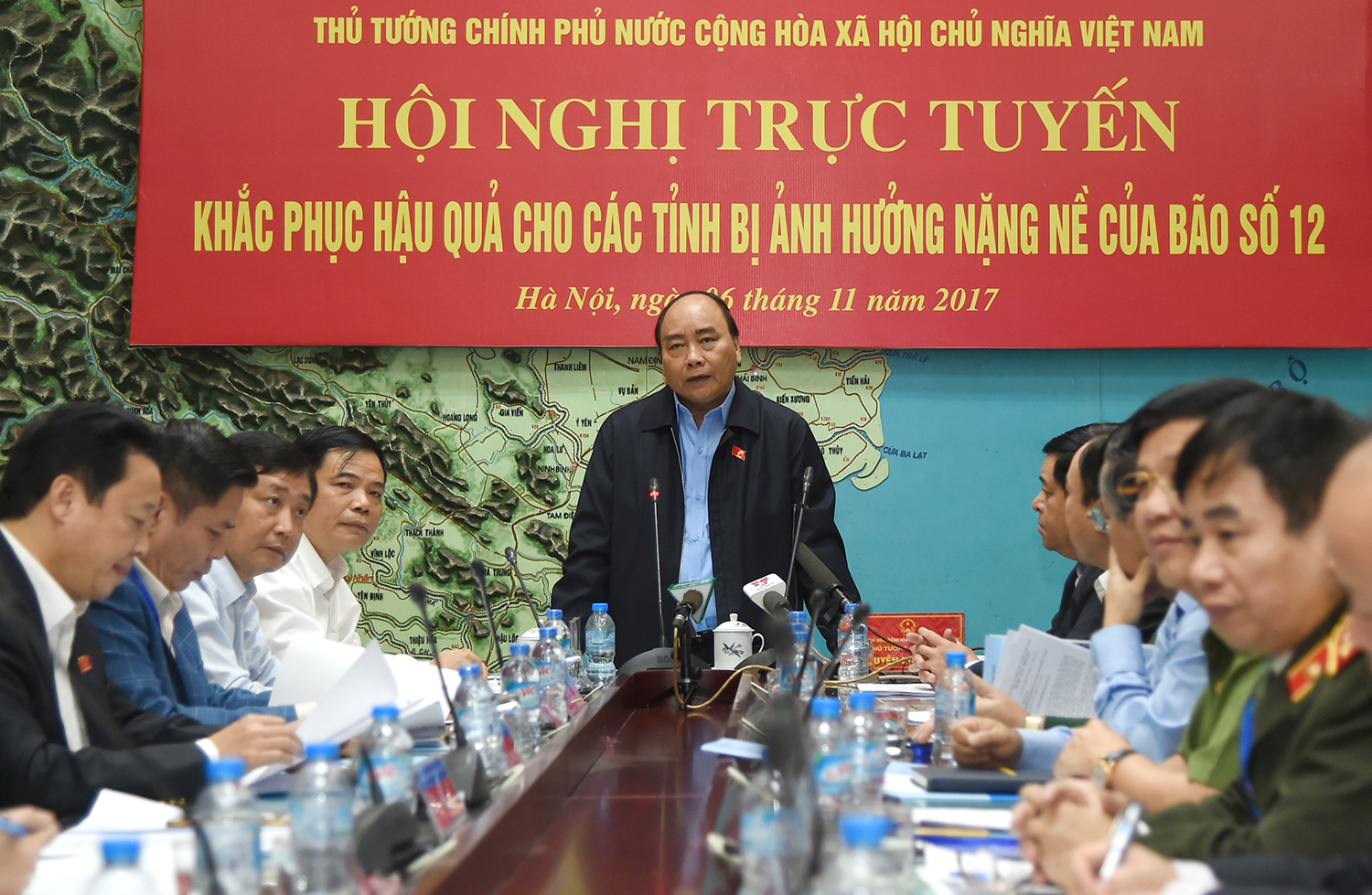 Phát biểu ý kiến kết luận hội nghị, Thủ tướng Nguyễn Xuân Phúc nhấn mạnh, sau bão số 12 là lũ lụt lớn, gây thiệt hại nặng nề tính mạng và tài sản của nhân dân 9 địa phương miền Trung và Tây Nguyên; sau lũ lụt là nguy cơ dịch bệnh, thiếu đói.