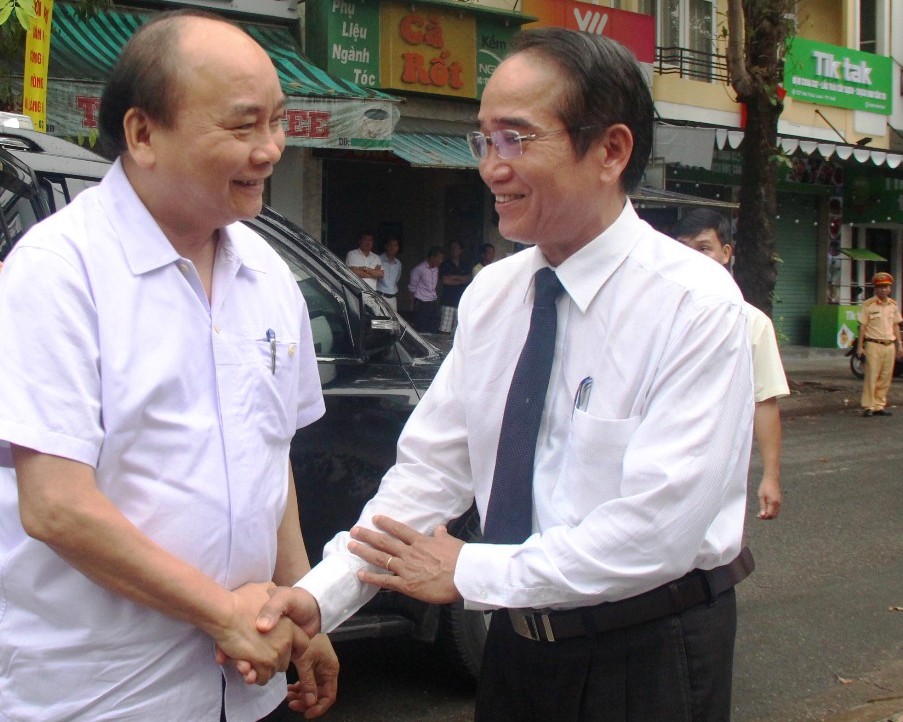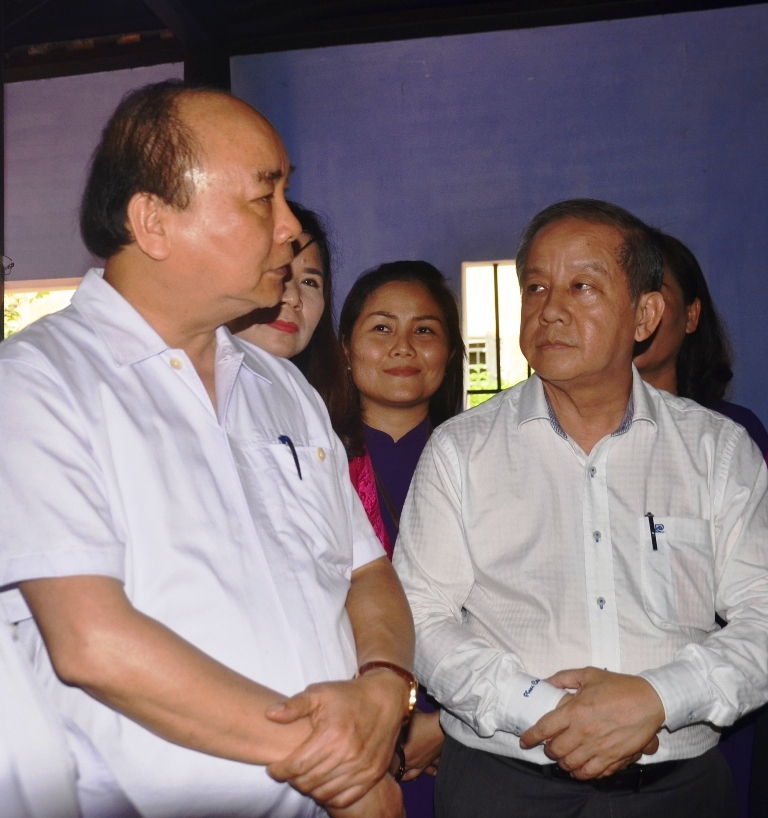 Thủ tướng Nguyễn Xuân Phúc và Chủ tịch UBND tỉnh Phan Ngọc Thọ tại buổi viếng thăm. Ảnh: Võ Nhân