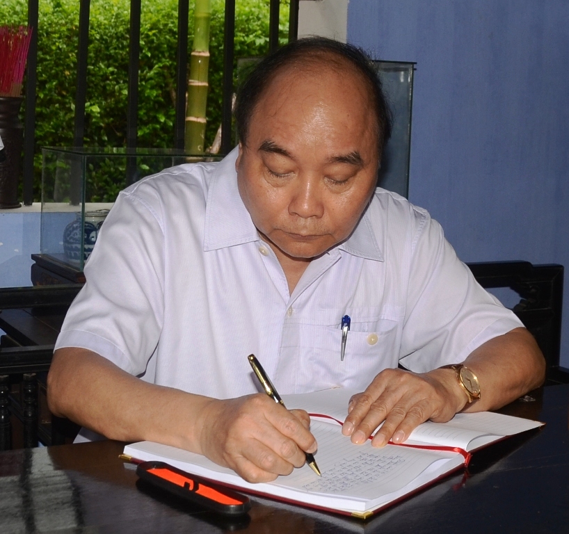 Thủ tướng Nguyễn Xuân Phúc ghi vào sổ lưu niệm tại Di tích Nhà lưu niệm Chủ tịch Hồ Chí Minh. Ảnh: Võ Nhân