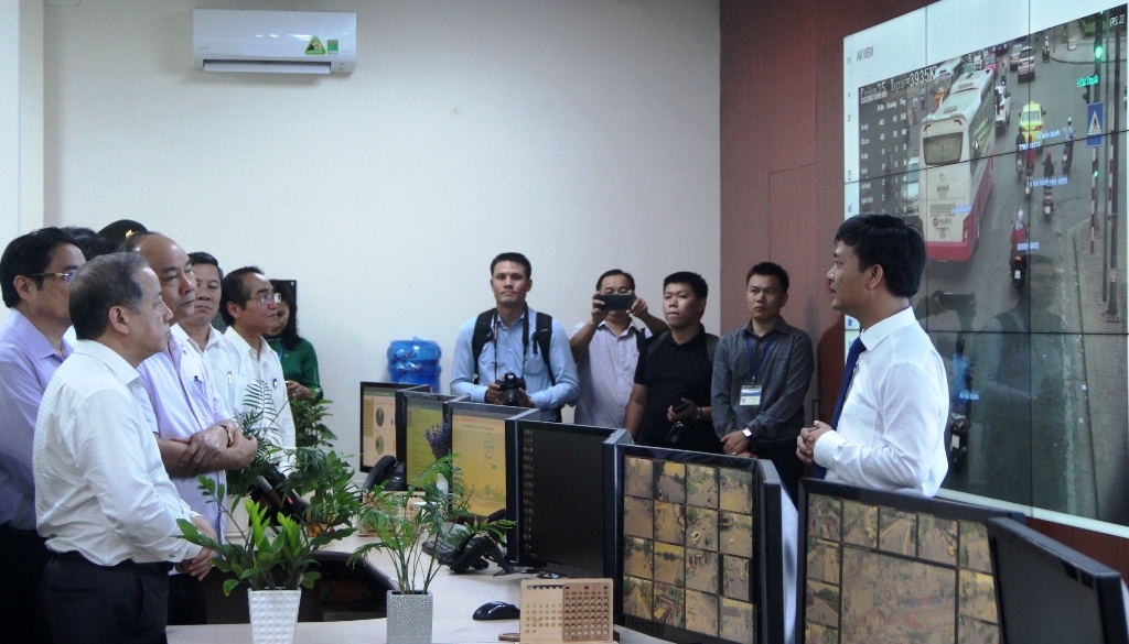 Tiếp đó, Thủ tướng Chính phủ Nguyễn Xuân Phúc đã đến thăm Trung tâm Giám sát, điều hành đô thị thông minh. Tại đây, Giám đốc Sở Thông tin và Truyền thông Nguyễn Xuân Sơn đã giới thiệu đến Thủ tướng về quy trình hoạt động của trung tâm.