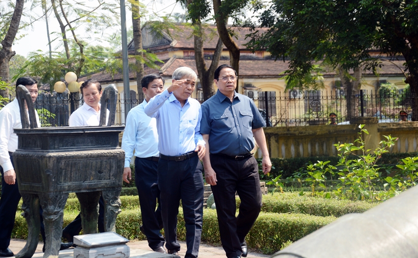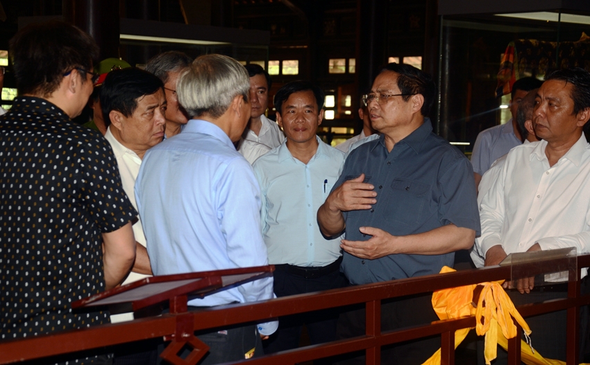 | Rời Hương Sơ, Thủ tướng Chính Phủ Phạm Minh Chính đến thăm Bảo tàng Cổ vật cung đình Huế. Tại đây, Thủ tướng Phạm Minh Chính nhấn mạnh: “Cổ vật là di sản, là tinh hoa, là hồn cốt của dân tộc, phải biến di sản thành tài sản, tài sản thành nguồn lực để phát triển đất nước” |