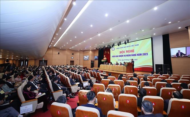 Hội nghị triển khai nhiệm vụ ngành Ngân hàng năm 2023. Ảnh: Dương Giang/TTXVN