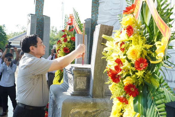 Thủ tướng Phạm Minh Chính dâng hương nghĩa trang liệt sĩ tỉnh Quảng Nam - Ảnh: LÊ TRUNG