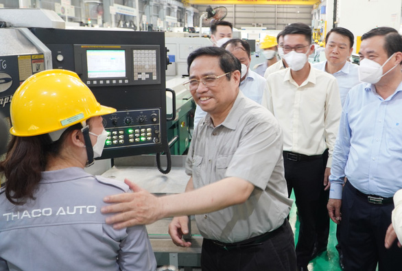 Thủ tướng Phạm Minh Chính thăm một nhà máy của THACO - Ảnh: LÊ TRUNG