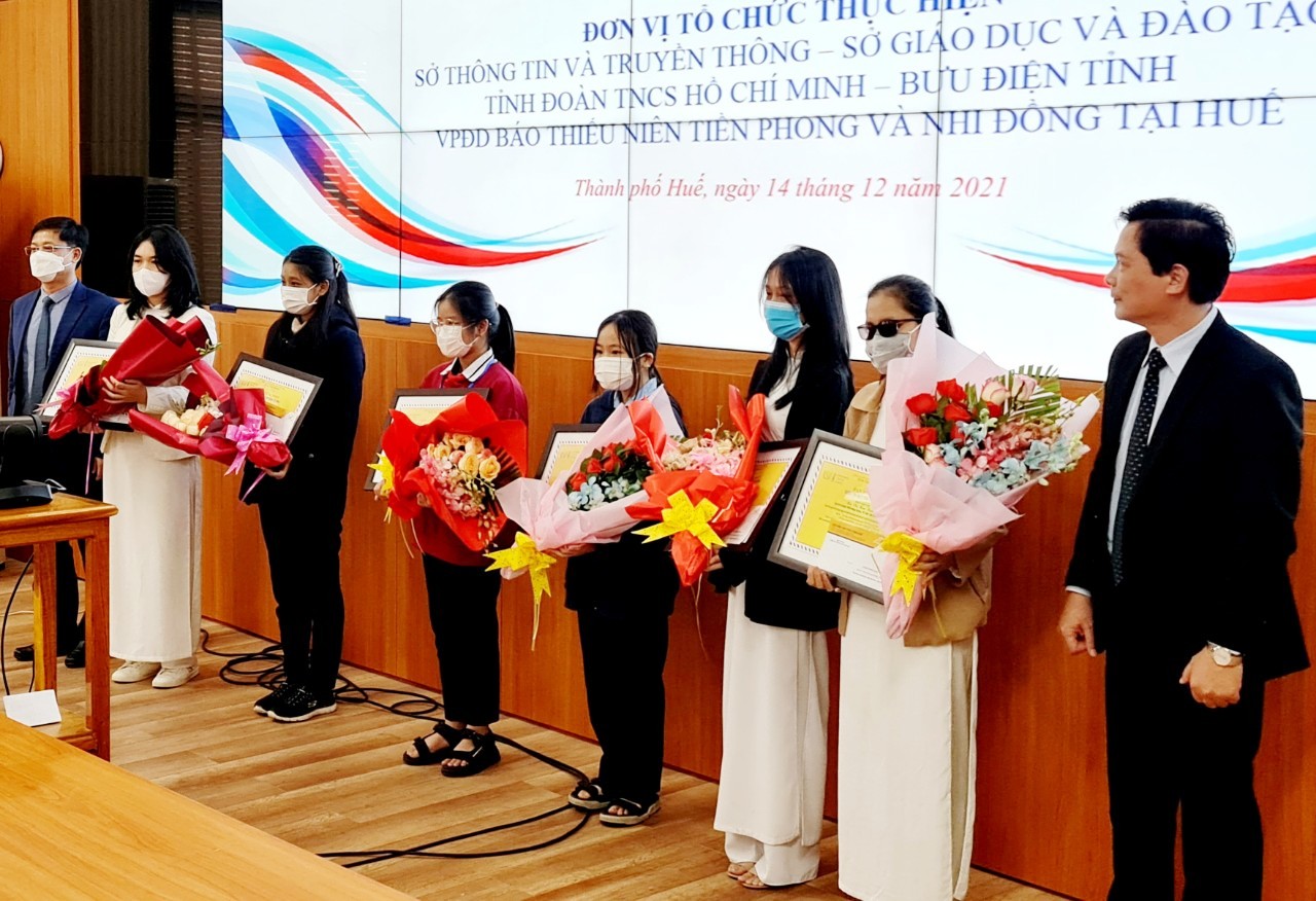 Lãnh đạo tỉnh trao giải cho các học sinh đoạt thành tích cao tại cuộc thi viết thư quốc tế UPU lần thứ 50