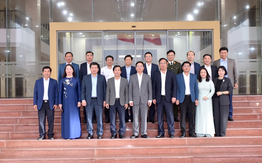 | Lãnh đạo hai địa phương chụp hình lưu niệm sau buổi làm việc |