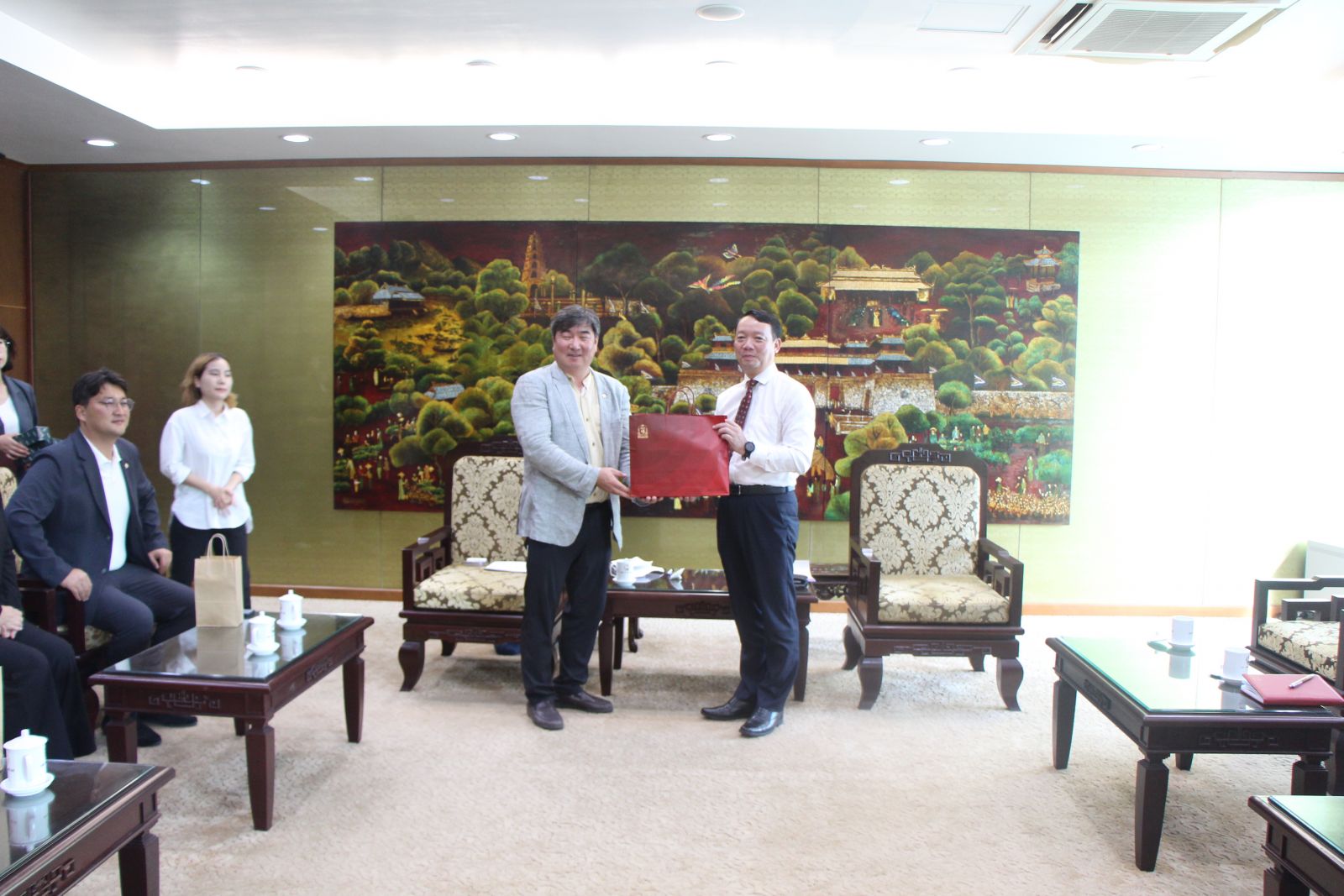 Ông Kim Ji HoonBí trao quà lưu niệm cho Bí thư Thành uỷ Phan Thiên Định (bìa phải)