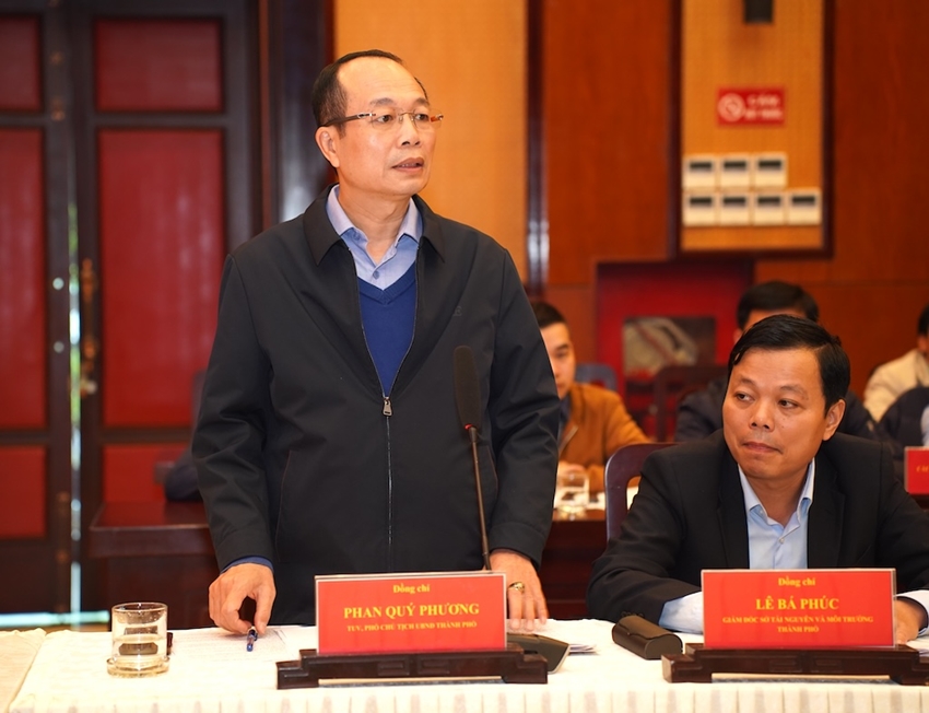| Phó Chủ tịch UBND thành phố Phan Quý Phương trao đổi tại buổi làm việc |