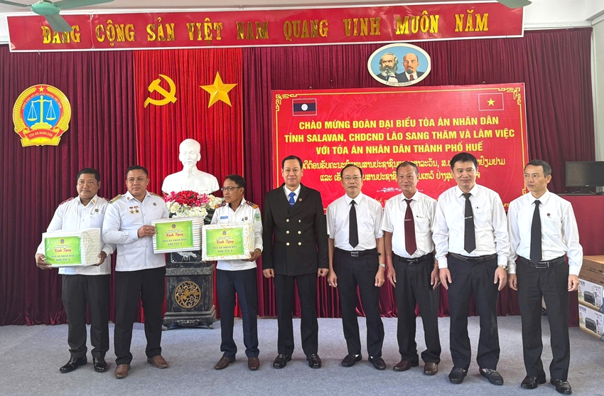 Dịp này, TAND TP. Huế đã trao tặng 4 bộ máy tính và hai máy in cho TAND tỉnh Salavan để phục vụ tốt hơn trong công việc.