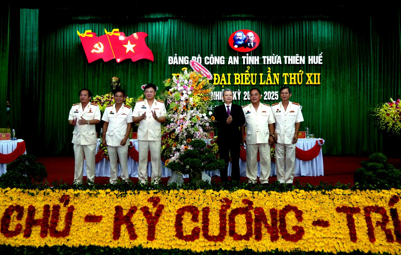 Bí thư Tỉnh ủy Lê Trường Lưu tặng hoa, chúc mừng Đại hội Đảng bộ Công an tỉnh