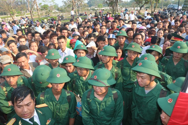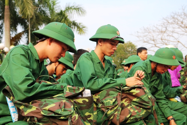 Ngược lại, các tân binh tỏ ra vui vẻ, tự tin. Tân binh Đặng Mão (thị trấn Thuận An) nói trong nụ cười: “Tuy buồn vì xa nhà, xa cha mẹ, người yêu nhưng em vui vì ở môi trường mới sẽ trưởng thành hơn và được đóng góp sức trẻ cho đất nước”.