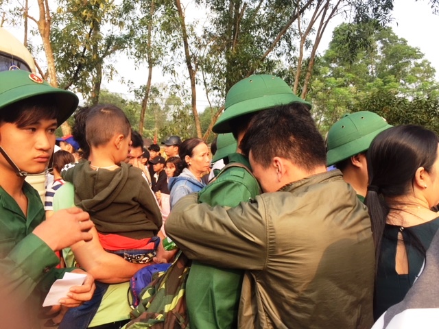 Cái ôm chia tay trước giờ lên đường nhập ngũ ở Phú Vang. Ảnh: Quỳnh Anh