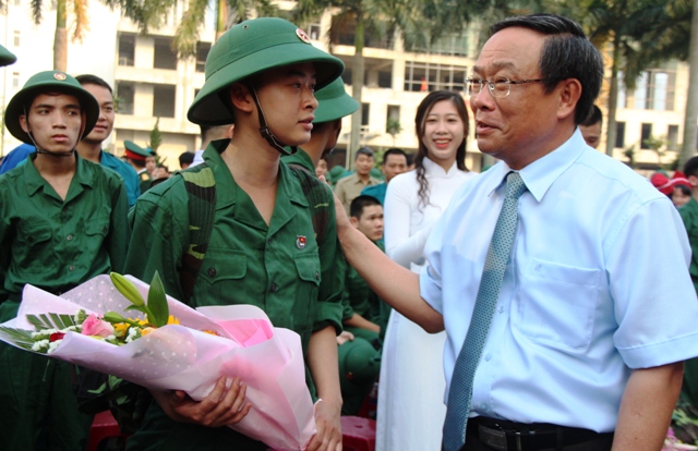 Bắt tay động viên các tân binh, Bí thư Tỉnh ủy Lê Trường Lưu nhắc nhở, dù bất cứ hoàn cảnh nào, các tân binh cũng phải làm tròn trách nhiệm; giữ vững kỷ cương, kỷ luật quân sự; sớm hoàn thành nghĩa vụ trở về địa phương.
